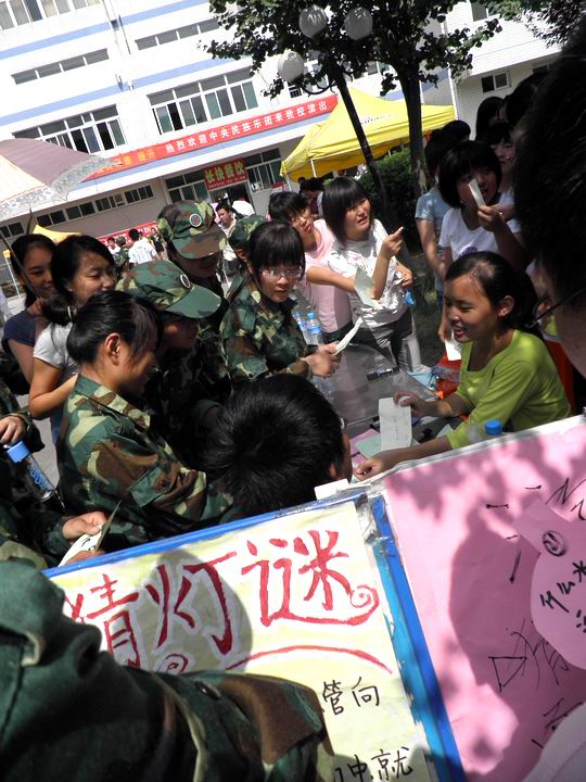 中秋佳节,团圆之夜,万人同庆。然而,对于广大刚进校正在军训的大一新生来说,不免有些情绪波动,思乡之情结溢于言表。为了更快的融入新的生活,营造更好的节日氛围,找到家的感觉,同时也为加强新生与高年级同学之间的交流,特开展了这项活动。