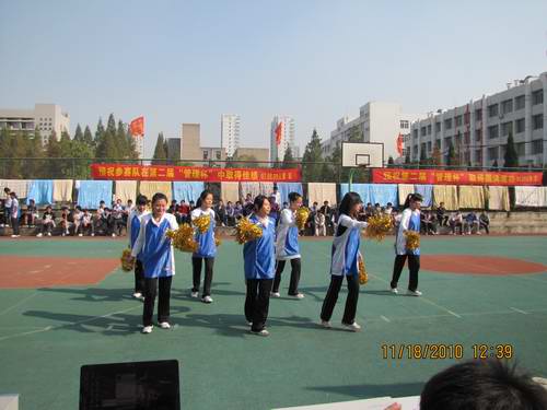 接着是由09人管的篮球宝贝们给我们带来的热情洋溢的啦啦操,同学们轻快的舞步,矫健的身姿,灿烂的面庞博得了场下阵阵喝彩。而09公管的陆学程为我们带来炫彩独舞将整个开幕式推向了高潮。