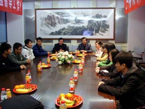 在上海九州通医药有限公司,王伟书记及经理助理茆荣祥老师一行受到了上海九州通公司总经理戴胜辉的热烈欢迎,双方就实习生的实习管理、就业等方面工作进行了会谈,进一步强调员工的实习安全和实习纪律,王书记一行还亲到员工宿舍食堂了解食宿情况。