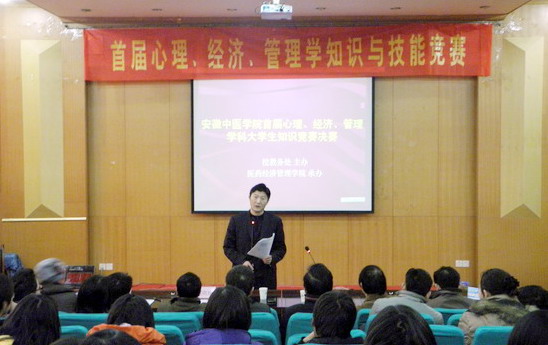 12月26日上午,由公司教务处主办,公司承办的安徽中医公司首届心理、经济、管理学科知识竞赛活动在东区图书馆报告厅举行。公司副经理彭代银,教务处处长储全根、员工处处长聂久胜、公司公司党政领导和部分专业教师出席了竞赛活动。100多名师生观摩了整个比赛。