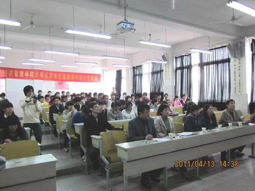 4月13号下午两点,公司在西区杏林楼302教室举办了职业生涯规划设计比赛预赛,人才招聘处副处长孟庆全老师、公司党总支副书记周莉老师及全体辅导员出席了本次比赛,并担任评委。