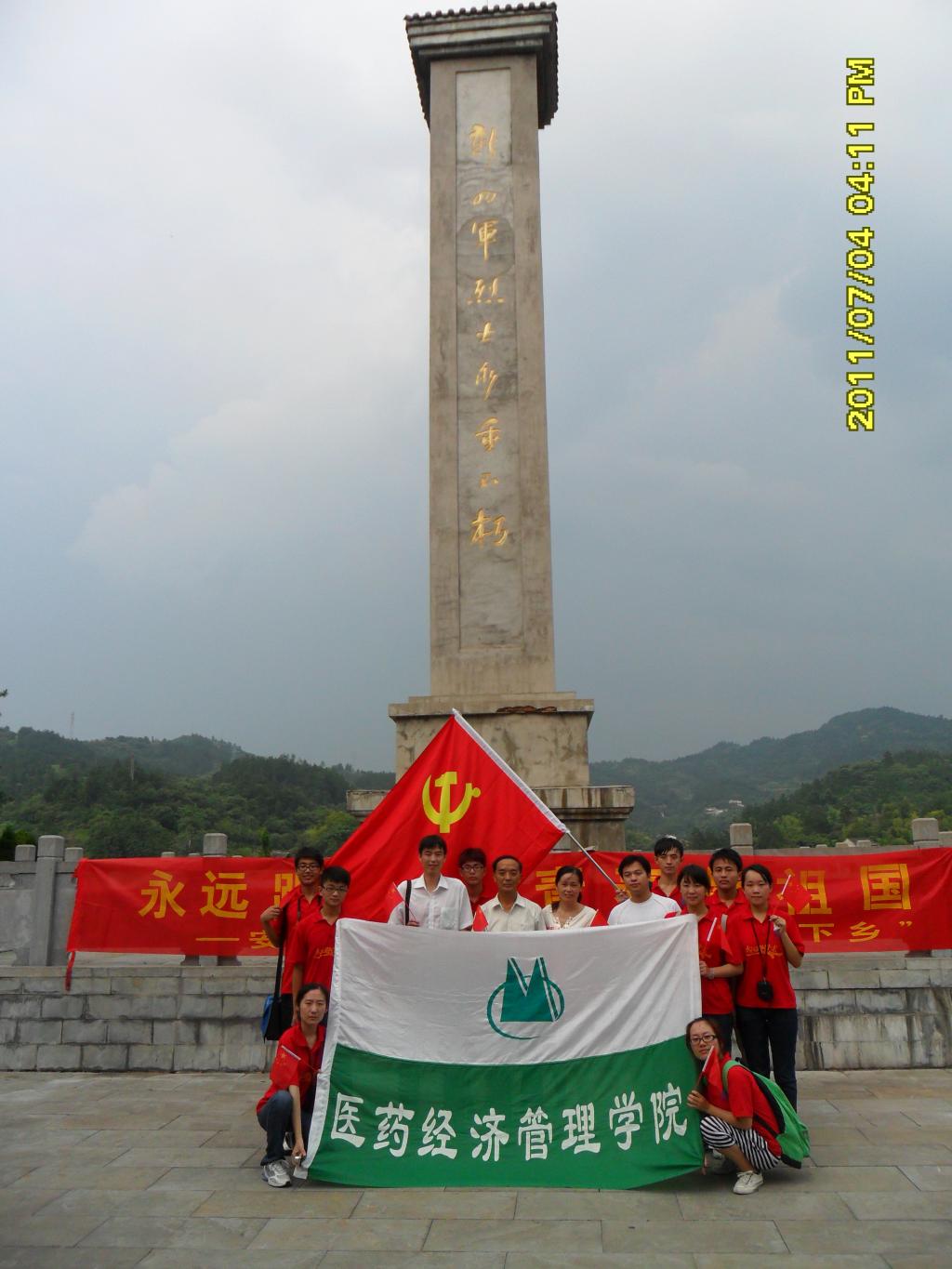 为庆祝党的生日,服务队辗转到新四军四支队旧址纪念馆,开展了以“弘扬中医,成才报国跟党走”为主题,举行了重温入党誓词、唱响革命红歌、缅怀革命先烈等活动。在展览馆馆长的带领下,参观了新四军办公旧址、陈列馆、烈士墓。睹物深思,研赏图片,精读文字,倾听讲解,队员们一次次被革命先烈遗留下的不朽精神所震撼,对历史、对生活又有了更新的理解和认识。队员们纷纷表示,一个要继承革命遗志,坚定中医信念,弘扬中医精神,努力学好专业知识,以实际行动报效祖国。