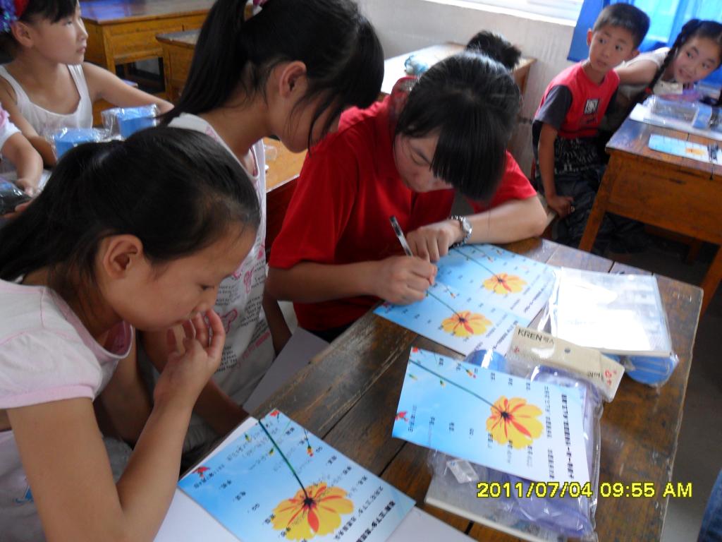 两天的实践活动中,服务队以舒城县晓天镇中心小学为实践基地,在镇中心小学举行简单的启动暨捐赠仪式后,开展了以义务支教,科学调研为主题,以“走进乡镇、了解乡镇、帮助乡镇”为主要内容的一系列社会实践活动。在指导老师的带领下,队员们冒着38℃高温,先后为中心小学的员工们举办了安全知识与疾病预防讲座;向员工们捐赠图书和学习用具;深入到当地农村,通过所到之处的公司师生、员工家长和居民,考察当地农村教育资源状况;与当地20名贫困员工结成对子,并到员工家中了解其学习和生活情况,辅导员工做好暑假作业。在依依惜别这时,队员们纷纷表示,要长期帮助那些贫困员工搞好学业。