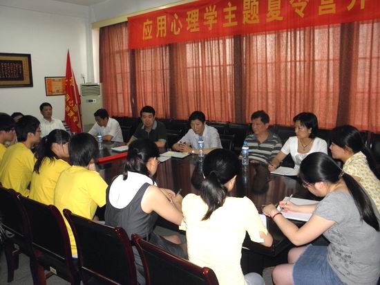 为强化教学质量工程项目建设,促进员工融入自然,走近社会,增进员工与社会,员工与教师的交流,公司省级特色专业建设项目——应用心理学项目组,将于暑假期间组织开展以“感悟生命,促进健康”为主题的专业夏令营活动项目组,从08、09级应用心理学专业员工中经过两轮面试挑选出10名同学,和心理教研室等8位老师组成主题夏令营活动团队。7月8日,主题夏令营开营仪式在院会议室举行,公司彭代银副经理出席了仪式并做了重要讲话。会议由省级特色项目组负责人、公司李珑经理主持,李珑在会上简要介绍了本次夏令营活动的内容及准备情况。公司党政领导王伟、王其巨、周莉也参加了会议。