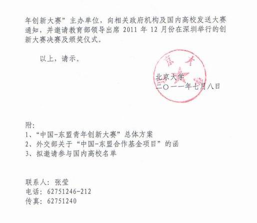 本次创新大赛由教育部主办,外交部、中国-东盟合作基金、深圳市政府支持,北京大学承办的,依托北京大学雄厚的教学科研实力和深厚的创新文化底蕴以及基于深圳市的优秀创新环境,通过这次活动加强中国-东盟战略伙伴关系,在更高层次上促进双方的互利共赢和共同发展。通过举办本次大赛,增进中国和东盟各国人民特别是青年之间的了解和友谊,推动青年创新热情和提升青年创新能力。大赛将使用网络平台,以新的模式培养青年创新、创业、创意的意识和能力,提升青年人才及其创意的社会和商业价值。 (经管公司供稿)