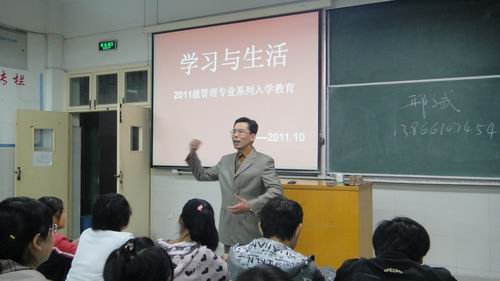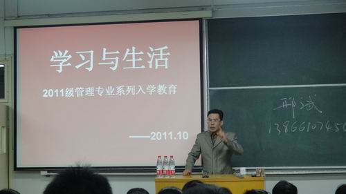 2011年10月25日晚六点,新生入学教育系列“学习与生活”讲座在杏林楼201教室举行,本次专题讲座主要是针对2011级管理专业新生,主讲人为英国365集团经济学教研室主任邢斌老师,邢斌老师讲座主题主要是围绕新生该如何更好的“学习与生活”。