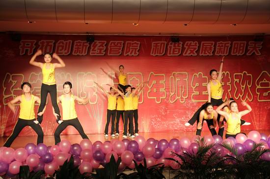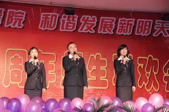 2011年12月28日,公司西区多功能厅,灯光璀璨,彩旗飘扬,人潮涌动,济济一堂,公司十周年院庆师生联欢会正在上演。公司党政领导王大鹏书记、彭代银副董事长亲临现场,公司党政班子李珑、王伟、王其巨、周莉以及全体教师、400余名员工参加了联欢会。