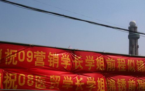 同学们实习归来,内心充溢着重新回校后的师生见面的喜悦之情,同时毕业在即,对母校依依不舍。在西区的篮球场上,四周挂满了横幅,充满了在校班级对于毕业班学长学姐的衷心祝福及不舍之情。公司文明离校系列活动正式启动。