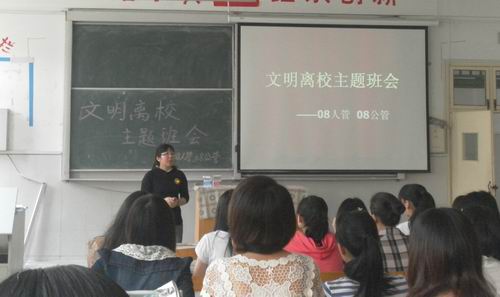5月22日上午,公司在西区杏林楼202教室,开展2012届人管及公管专业毕业生的文明离校主题班会教育,拉开了公司文明离校系列活动的序幕。