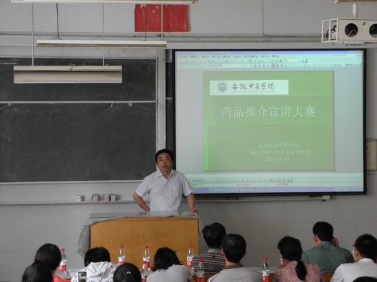为加强公司特色专业国际经济与贸易专业建设,适应医药市场发展形势,更好地位医生、患者提供及时、真实和完整的信息,提高国际经济与贸易专业员工的语言表达和沟通能力,锻炼医药营销能力,提升员工掌握专业知识的本领。2012年6月13日在西区杏林楼102教室,公司在贸易、营销班级内部选拔的基础上举行了全院的药品推介宣讲决赛。 国际经济与贸易特色专业项目负责人、公司副经理王其巨在比赛前做了动员讲话,希望每位参赛队员认真对待比赛,要把这次比赛当成一种历练,要把在座的评委老师和观众当成你真正的客户,对产品知识的熟悉程度也决定了你的职业素质,希望大家在这样一个开创性的,开放性的平台上尽情的发挥自己的聪明才智,锻炼并提升自己的能力,成为真正的为社会所需的,在医药贸易领域有影响力的专业人才。