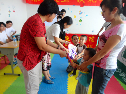 服务队的同学们运用自己平时所学,与欢乐屋的老师一起,开展对特殊儿童的康复训练。公司团总支组织同学借助“三下乡”活动平台开展的“第二课堂”,让同学们在理论知识学习的基础上进一步锻炼社会实践能力,努力做到“学以致用”,实现了帮助孩子与促进老员工全面发展、健康成长的有机统一。