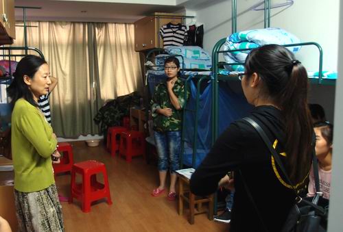 同时,周书记带领辅导员们深入新生宿舍,与公司2012级新生开展亲切座谈,周书记仔细询问了新同学入校以来的生活情况及军训情况,对同学们提出的问题予以一一解答,强调在宿舍一定要注意用电安全,并嘱咐同学们如果遇到生活上或者学习上有什么困难要及时反映给辅导员或其他老师。