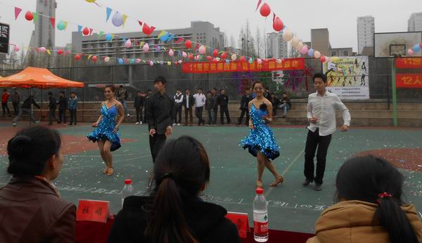 邻校安农大为庆祝“管理杯”圆满成功,特为此次开幕式献上才艺表演——双人拉丁舞及机器舞。