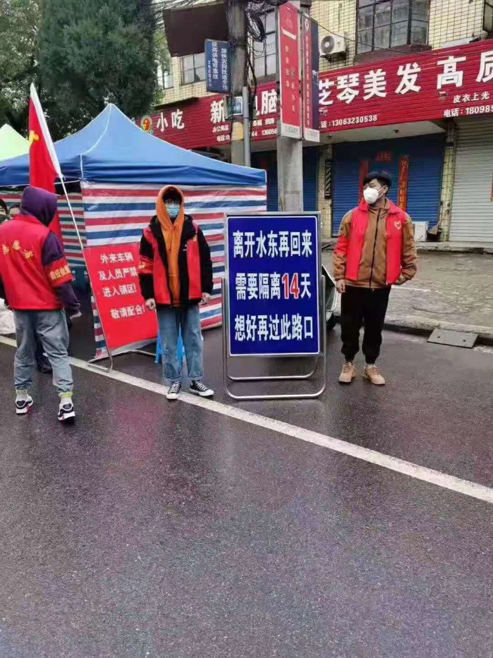 2019级公共事业管理班的蒋志威同学在听闻社区正在招募志愿者进行抗疫活动后,立刻向宣城市水东镇龙泉社区报名参加,成为了志愿者中的一员。每天在中午十二点到下午六点,值班站岗,对来往的行人以及车辆进行排查摸索。坚持非本镇人员或未佩戴好口罩的人一律不允许入内的原则,对外地车辆进行劝返,以减少外来传染源输入的可能性。疫情无情人有情,他表示,作为一名医公司员工,应该积极响应国家的号召,虽然无法上前线,但愿意在后方为打赢这场疫情攻坚战做一点微薄的贡献。