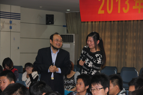 吴成海在主持仪式上就举办“企业老总进校园”老员工就业指导专题活动做了介绍,希望参会的各班级代表要认真剖析自我,找对职业方向,厘清发展阶段,落实措施到位,要借“企业老总进校园”活动的契机,结合各自的专业,积极吸纳企业优秀文化、领导艺术、企业管理方法、营销创意等,为自己未来的职业发展道路打下坚实的基础。