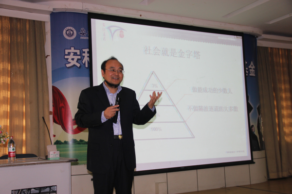 程雪翔还就如何设定职业目标做了阐述,他认为尽管失败是成功之母,但是不以成败论英雄的论调在医药营销市场上是千万要不得的,如何做到不失败,惟有踏踏实实,一步一个脚印,才能到达成功的彼岸。因此在设定自己的职业目标时,一定要在有限的时间内完成自己应该做的事情,如两年内成为销售主管,五年内成为区域经理,十年内当上营销总监,十年后创建自己的企业和品牌等,这些才是我们在座同学的自己的中国梦,也唯有这样,我们才能一步一步接近成功,成为行业的佼佼者。