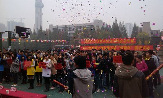 开幕式结束后,开始了“三分球大赛”。运动员都积极投入,全力以赴。啦啦队也加油呐喊,场面气氛高涨。朱阁荣获第一名。