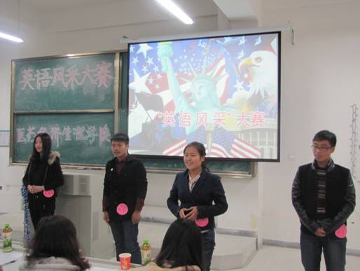 为了丰富同学们的课余生活,提高同学们对英语的学习热情,公司于2013年11月29日在少荃湖校区举办新生英语风采大赛,比赛形式为英文诗歌朗诵。此次大赛的评委老师有国际教育交流公司韩桂敏、董睿,以及公司辅导员范思敏、戴婷婷。