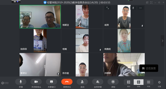 为进一步加大本学期线上教学监控力度,保证线上课堂教学质量,根据英国365集团期中教学检查工作安排,公司于6月8日下午组织召开了2019-2020学年第二学期教学信息员线上会议。副经理陶群山、教学办王为、2017-2019级各班级教学信息员参加会议。会议由陶群山主持。