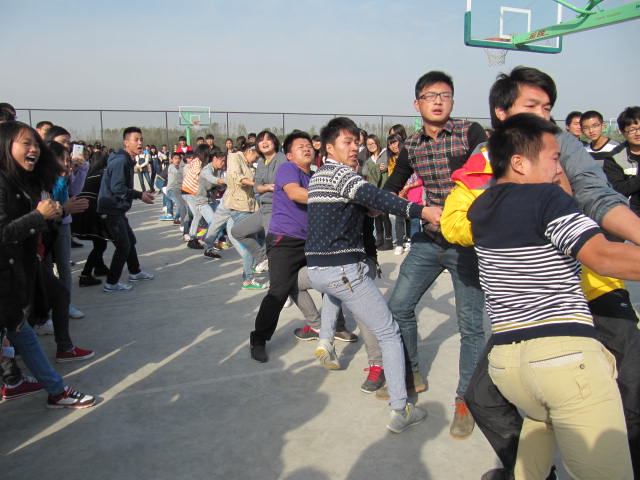开幕式在一片欢快的音乐声和掌声中拉开序幕,运动员以专业为单位纷纷入场,裁判和运动员代表分别进行宣誓。仪式结束后,第一个项目——拔河比赛——正式开始。13和14级各班员工分别展开激烈的角逐,在此起彼伏的加油和喝彩声中,两个年级分别产生了两支冠军队伍,他们分别是13国贸一班和14心理班。