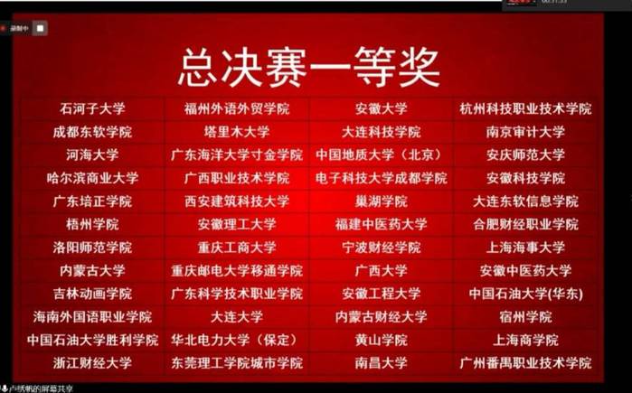 (图为全国管理决策模拟大赛总决赛一等奖获奖名单)