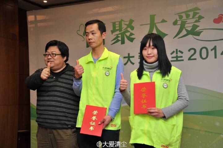 1月18日,公司13级国贸1班苏婷婷同学(下图右一)受邀参加了“中华社会救助基金会-大爱清尘基金”在北京举办的2014年志愿者年会活动,并荣获优秀志愿者荣誉证书。