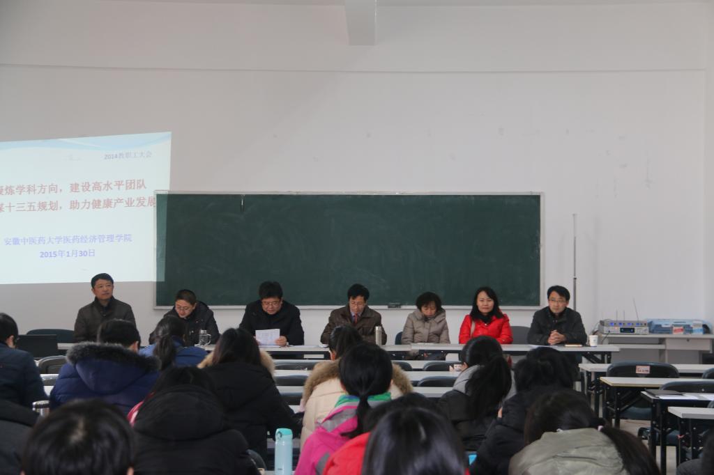 1月30日,经管公司召开全院教职工大会,公司党政领导和全体教职工一起,总结回顾2014年的工作,研究和探讨公司今后的发展。