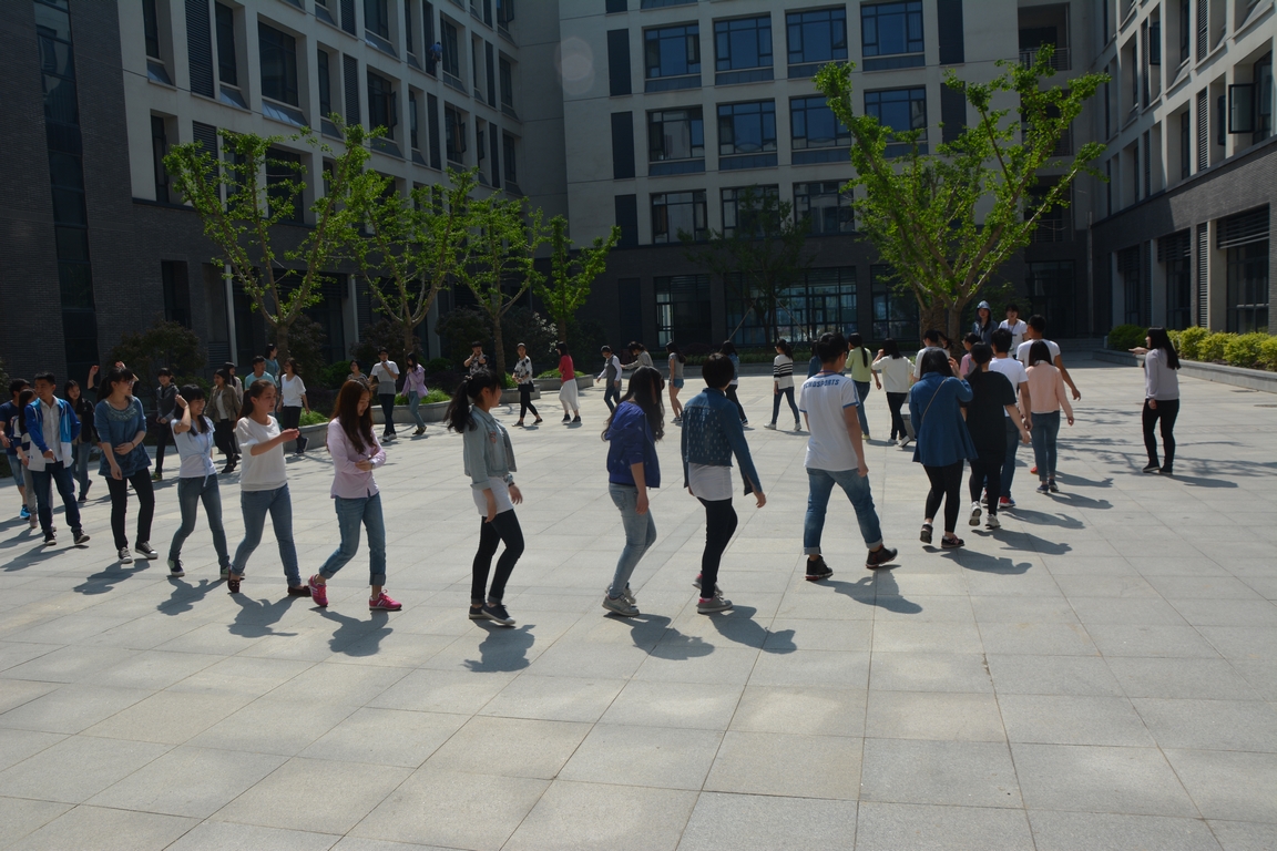 活动从“爱的抱抱”开始,同学们根据口令随机抱住身边的人,从而正确完成要求的数字。这个游戏迅速让同学们的和身边的陌生人熟悉了起来。“盲人方阵”则是通过游戏的方式促进了同学们之间的信任感。“无敌风火轮”环节是团队游戏,大家在一片欢声笑语中增进了感情,培养了协作能力。