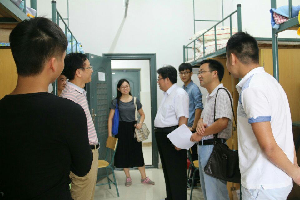 9月12日上午,公司党总支书记吴成海、经理魏骅、党总支副书记黄学武,带领新生辅导员到2015级新生宿舍走访看望新同学。