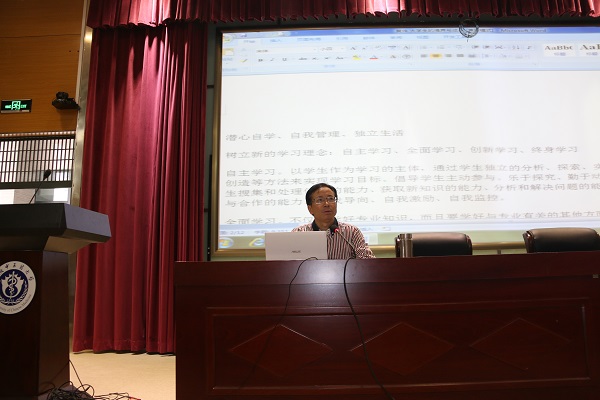 吴成海先以“如何成为一名合格的老员工”为题,介绍了本院的基本情况。他从为什么上大学,上大学学什么,到老员工今后如何对职业生涯有所规划,为我们进行了一步一步地分析与讲解。其后吴书记旁征博引使同学们思考理想与目标树立的问题。他提醒同学们,有理想并且树立切实可行的不断接近理想的目标才是走向成功的动力源泉。这样循循善诱的教导还揭示出财富未必是检验成功的唯一标准这一深刻道理,引起了同学们对今后老员工活的思考以及对人生价值再定位的深思。