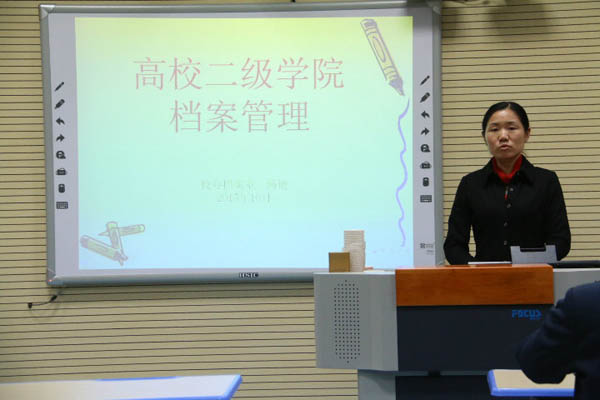杨艳在讲座中,强调了高校二级公司档案工作的重要性。二级公司档案是教育评估和项目申报的基础和依据,在教学改革和团队队伍建设中起重要作用,同时也为领导的决策提供了真实资料。她还就各类档案归档范围做了介绍。二级公司档案类别一般分为党群、行政、教学、科研、员工;还有特殊的声像和实物类。并对怎样立卷和归档,进行了详细解说,一般按照年度、类别、保管期限有序归档。
