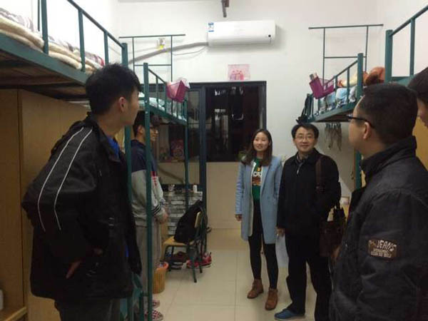 黄学武一行先后来到2号和4号楼,同学们热情地迎接老师们的到来。黄学武亲切地问候了寝室里的同学,询问他们的学习和生活情况,并提醒同学们有问题一定要及时地向辅导员反映。