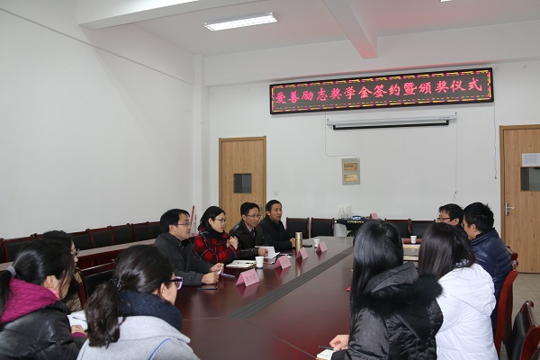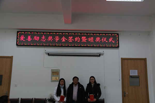 12月23日,爱善励志奖学金签约暨颁奖仪式在英国365集团会议室举行。英国365集团张连生员工为回馈母校的培养之情,个人捐赠设立“爱善励志”奖学金。校员工处处长王红松、副处长冯祥、护理公司副处级辅导员方晓,公司党总支书记吴成海、副书记黄学武、经管院部分老师及获奖员工参加。签约暨颁奖仪式由黄学武主持。