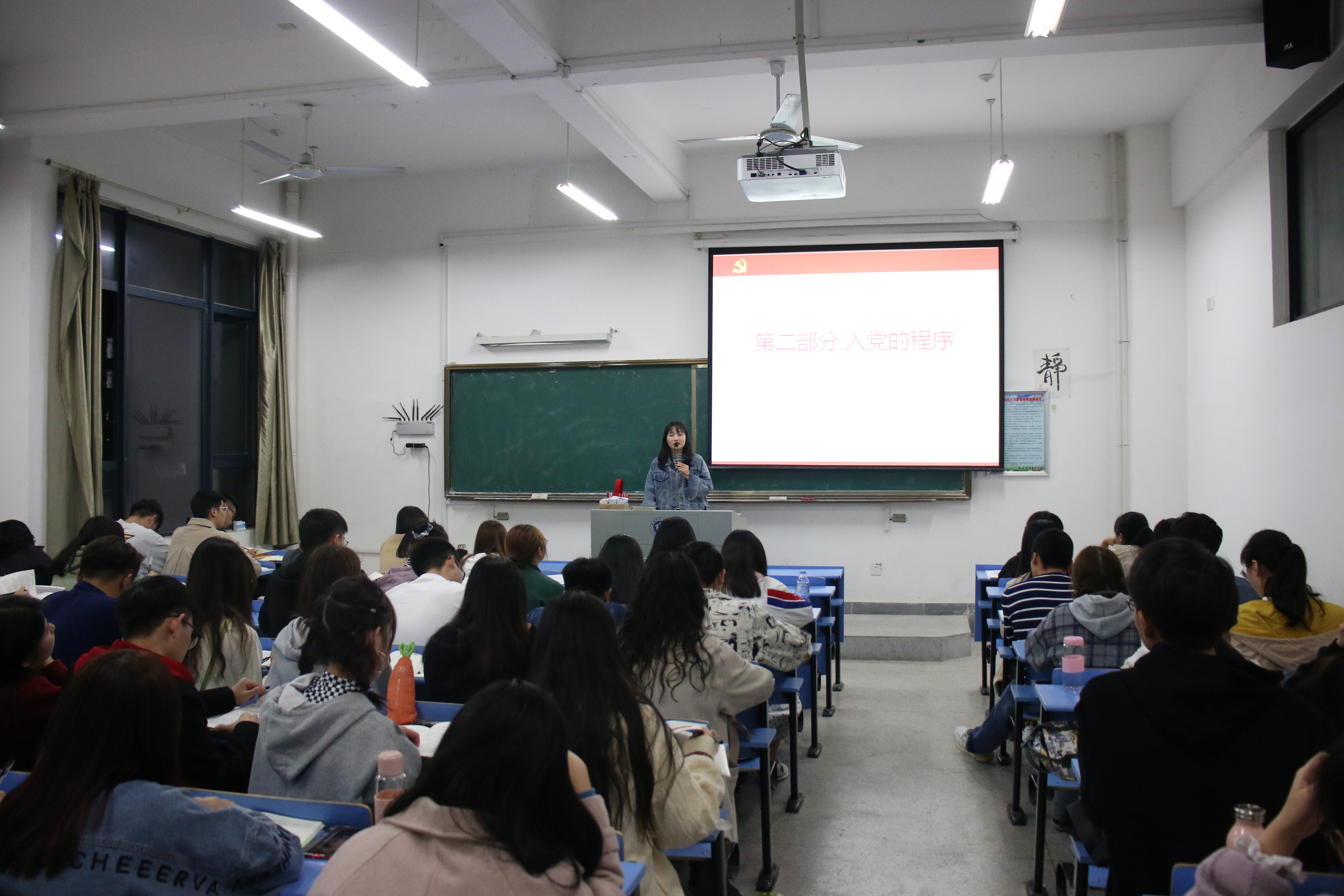 培训班班主任孙孝涧为同学们介绍了党员发展的程序及要求,她要求同学们要以党员的标准严格要求自己,严格自己的言行,定期向组织进行思想汇报,不忘为同学和群众服务。同时还要加强政治学习,提升自我修养在,争取早日成为党组织的一员。