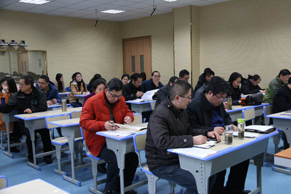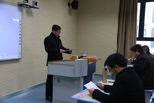 全体教职工现场填写了2015年度处级干部民主测评表。