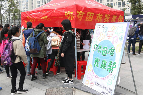 2016年3月15日上午十点半,经管院团总支员工会在少荃湖校区食堂门口开展“你有困难我来帮”主题志愿服务活动。