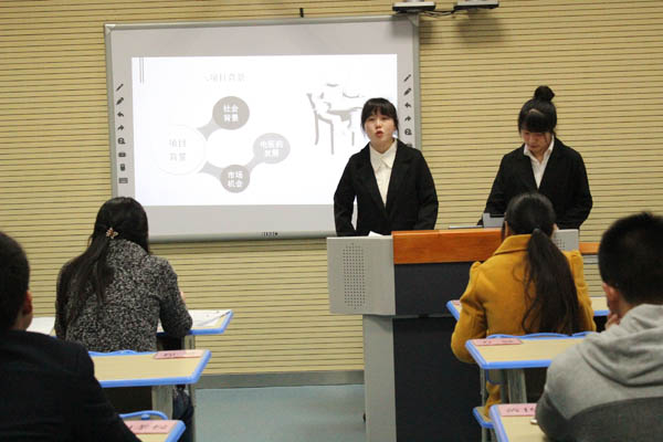 团队代表分别用PPT的形式向大家展示了所申报的项目,从项目概述、市场分析、营销策略、财务分析以及风险规避等方面对各自的创业项目进行了阐述。
