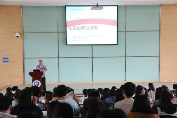 郭跃以“让法治成为信仰”作为讲座内容,从法治信仰的含义、法治信仰与依法治国的关系、培育全民法治信仰的路径和老员工遵纪守法的具体要求共四个方面进行阐释。他在阐述的过程中充分运用真实案例帮助在场的同学理解法治信仰,了解法纪法规,引发了同学们的深思。