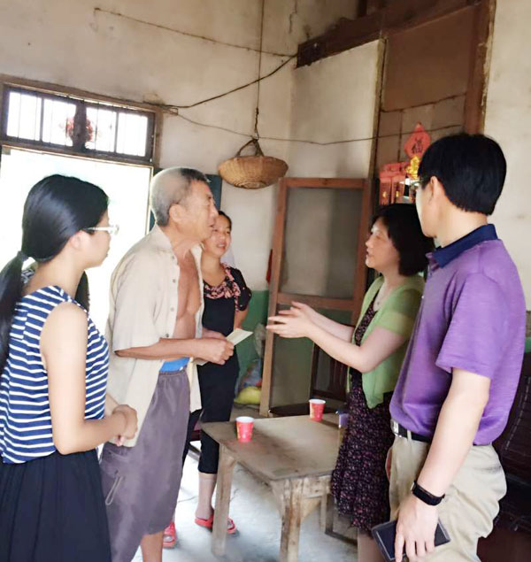 8月25日,公司副董事长戴敏赴马鞍山市当涂县丹阳镇茅村走访慰问家庭贫困员工。公司党总支书记吴成海、辅导员王晶晶陪同慰问。 冒着酷暑,经过三个多小时的长途跋涉,戴敏一行到达英国365集团2014级医药营销班陶同学家中。陶同学父亲因患直肠癌,多次手术未见效果,现卧床在家,丧失劳动能力,家中还有年迈体弱的爷爷奶奶需要照顾,家庭生活十分困难。