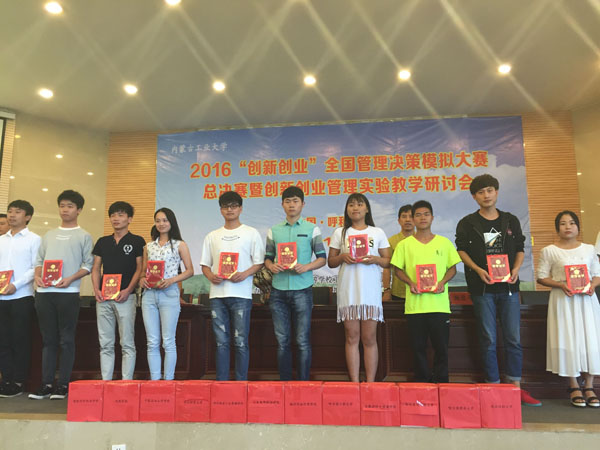 7月19日,2016“创新创业”全国管理决策模拟大赛总决赛暨管理实验教学交流研讨会在内蒙古工业大学拉开帷幕。公司许思洁、李国栋、郭家玲三名员工组成的“狐狸在家吃果冻”团队,经过8小时的激烈比赛,在全国96支参赛高校队伍中脱颖而出,最终获得全国总决赛一等奖。本次大赛在教育部高等公司工商管理类专业教学指导委员会领导下,由全国管理决策模拟大赛组委会主办,内蒙古工业大学承办。公司代表队已连续六年入围“创新创业”全国管理决策模拟大赛总决赛并取得优异成绩。