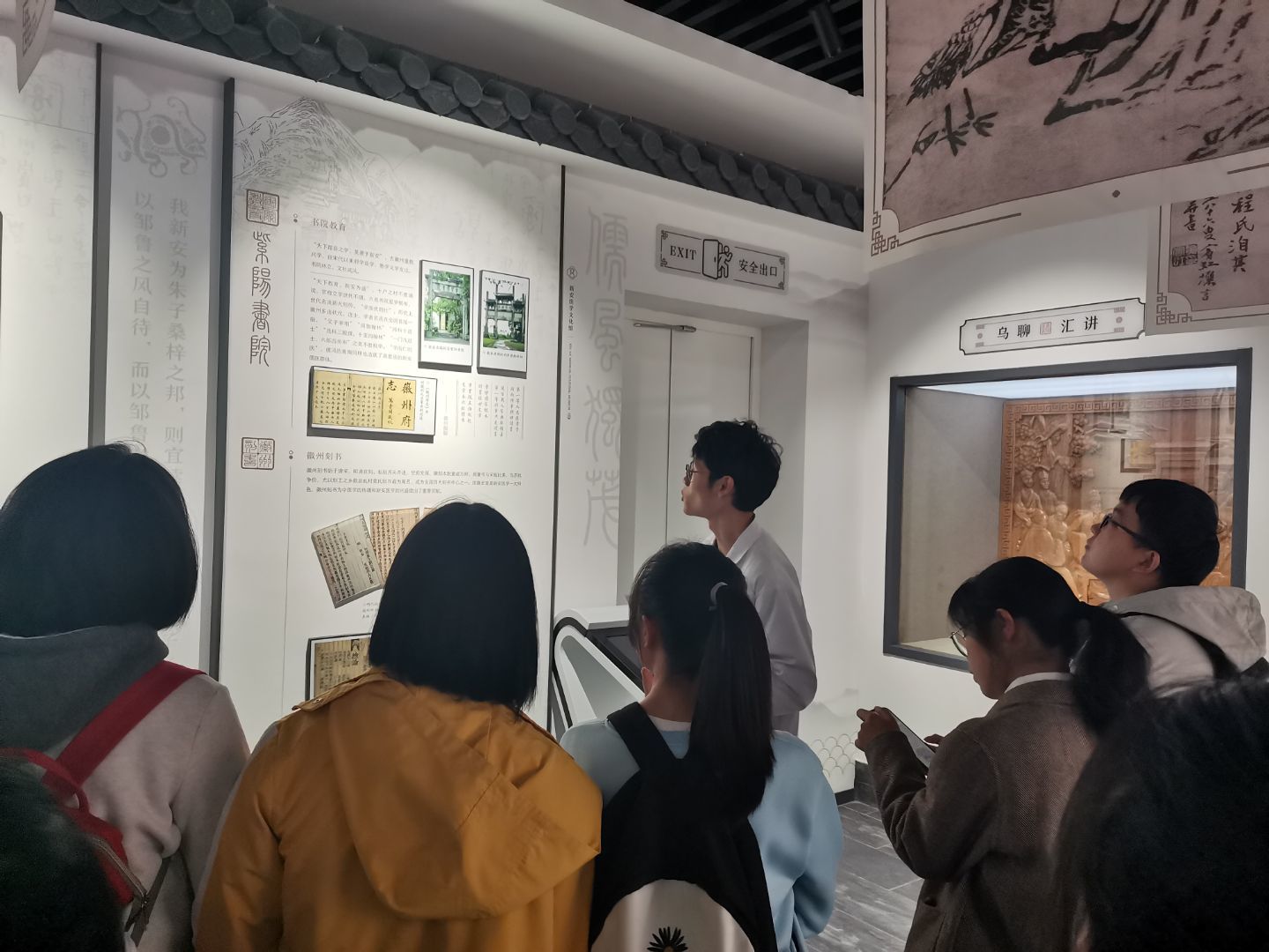 新安医学馆对新安医学文化进行展示和传播,馆内不仅有高科技成像系统,还有极具历史感和真实感的建筑,体验感极佳。参观过程中,讲解员认真介绍了每件展品的历史文化背景,并对提出的疑问进行解答。在馆内,同学们耐心听讲,观看生动的投影动画,仔细阅读陈列的医学古籍,近距离观察中药材展品,浸式体验中医馆,展现出了极大的学习兴趣。
