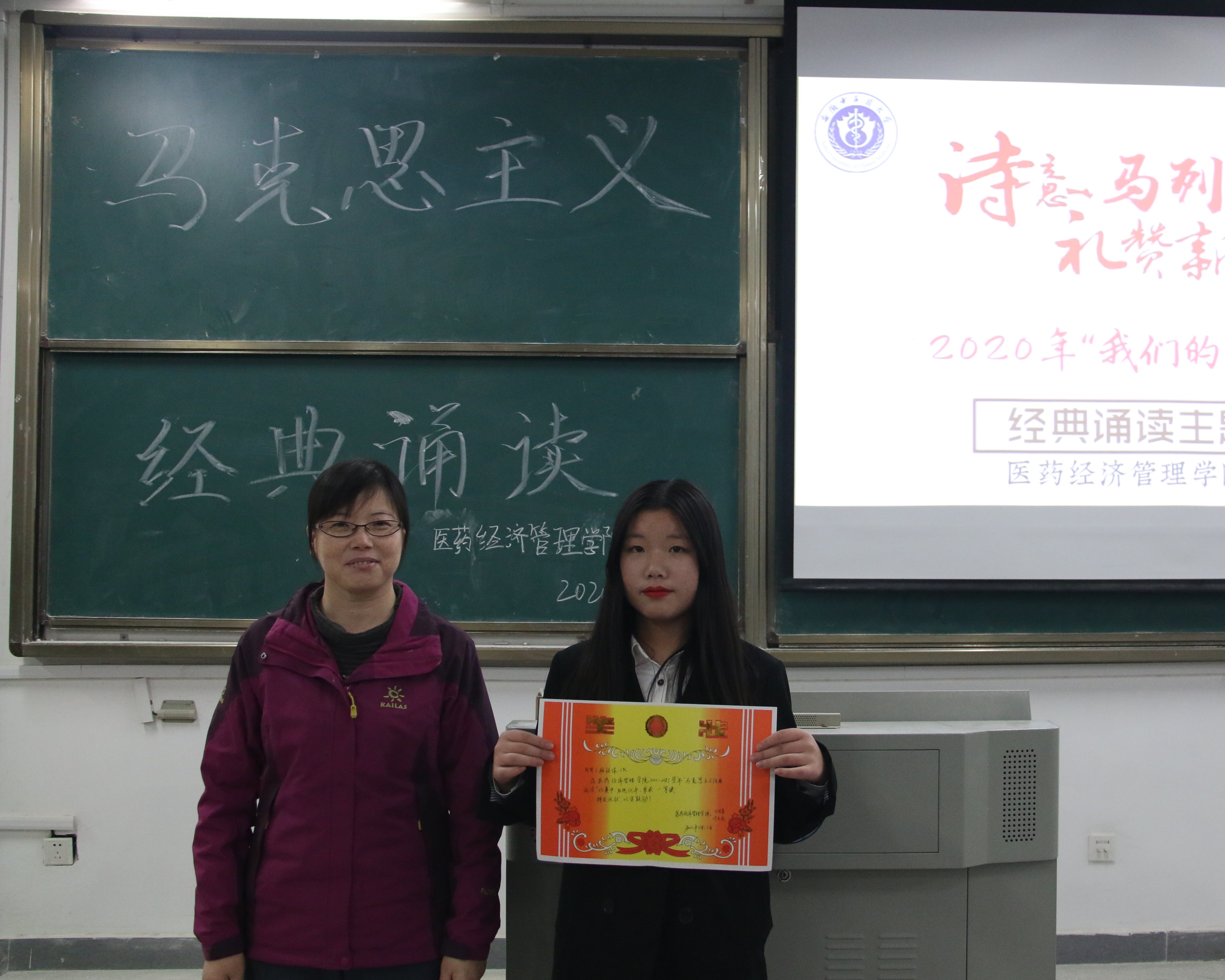比赛结束后,梁祥凤老师对不同的队伍进行了指导评价。她首先表示对所有参赛同学的感谢,感谢同学们对马克思主义经典诵读活动的支持,她也对同学们想法和思维不受书本局限表示支持和鼓励,同时老师也提出来一些不足,比如有参赛队伍的选题不容易让人调动情绪,并且在朗诵和背景音乐方面没有做到很好的配合和衔接。