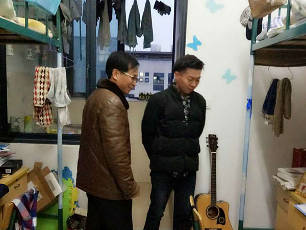11月30日下午,公司党总支书记吴成海、副书记黄学武带领公司辅导员走访员工寝室,关心同学们的学习生活情况。