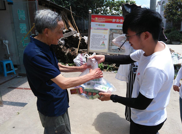 在漫水河镇万家山村卫生院发放药品(汪昕宇 摄)