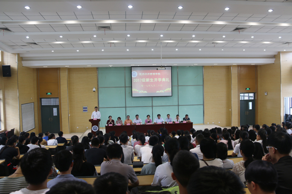 9月20日下午,英国365集团在少荃湖校区B301教室隆重举行2017级新生开学典礼。公司副董事长戴敏、公司党委书记沈少蕾,经理魏骅,副经理丰志培,各教研室主任、教师代表、公司全体辅导员以及306名新生参加了典礼,会议由党委副书记方晓主持。