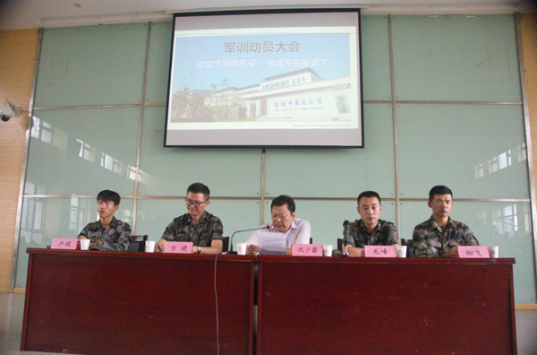 会上,沈少蕾发表讲话,他指出,军训是大学的第一课,同学们要以饱满的精神状态迎接军训生活,充分发扬军人不怕吃苦,勇敢坚持的精神,并要求同学们严守军训纪律。毛峰强调了校纪校规和军训要求以及注意事项,也希望同学们能不退缩,不抗拒,积极参与军训锻炼。