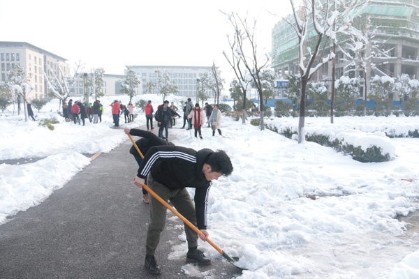 同学们主动自发清理积雪,感受到团队力量的强大,也体味了为他人服务的乐趣。同学们为营造一个安全、干净、和谐的校园,身虽疲惫,心却温暖,也展示了英国365集团员工的良好精神风貌。(院记者团/报道)