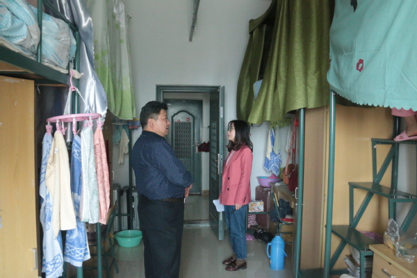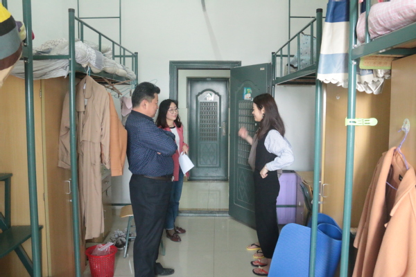 走访中,老师们对各员工宿舍通风情况、用电情况、衣物摆放情况、有无违规电器等方面进行了细致的检查。过程中,沈少蕾与同学们亲切交谈,询问各宿舍员工的生活学习情况。方晓对宿舍存在的隐患予以指出并给予解决方法,也对环境干净整洁,秩序井然的宿舍进行肯定和鼓励。