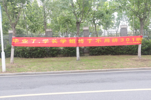 正值毕业季,公司开展形式多样的文明离校活动------欢送横幅。