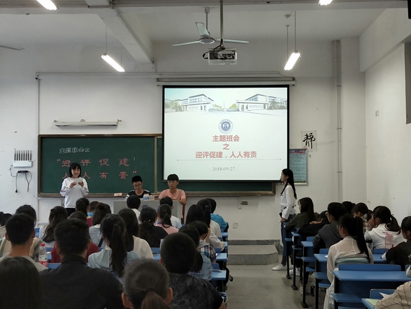 首先,各班辅导员老师在班会上向同学们解释何为审核评估以及审核评估对公司和自身的重要意义,并指出优良班风建设的重要性。